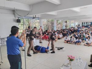 นำโดย พ.ต.อ.ชวลิต จินดารัตน์ ผกก.สภ.บ้านเสด็จ ,พ.ต.ท.พงษ์ศิลป์ ธนะภาษี รอง ผกก.ป.ฯ,พ.ต.ท.โสกิจ วรวงศ์ สวป.ฯ ,สายตรวจ 20-201พร้อมด้วยเจ้าหน้าที่ชมส. สภ.บ้านเสด็จ ร่วมกับองค์การบริหารส่วนตำบลบ้านเสด็จ จัดทำโครงการประชาสังคมต้านภัยยาเสพติด และซักซ้อมแผนเผชิญเหตุบุคคลคลุ้มคลั่ง(Active Shooter) ณ โรงเรียนเสด็จวนชยางค์กูลวิทยา จังหวัดลำปาง โดยมี ว่าที่ ร.ต.อรุณศักดิ์ ปัญญายืน นายกองค์การบริหารส่วนตำบลบ้านเสด็จ เป็นประธานในพิธี