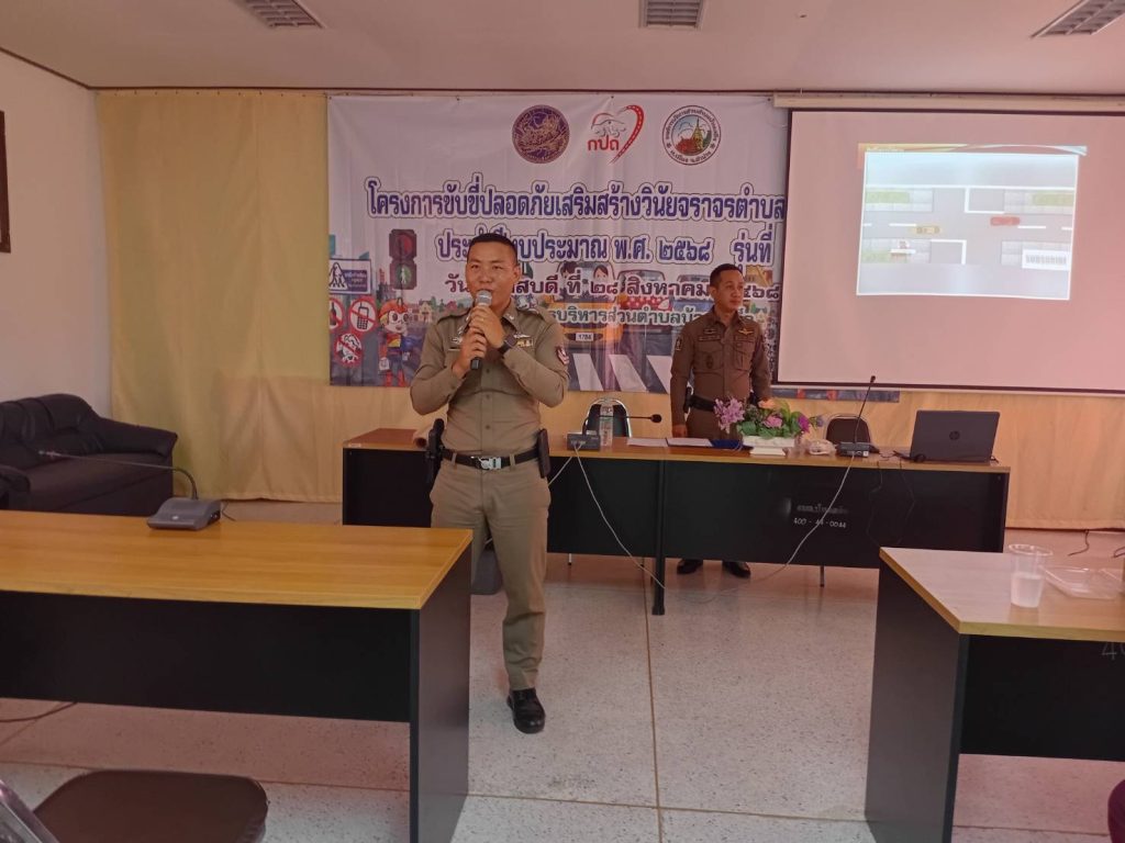 วันที่ 28 ส.ค. 68 เวลา 09.00 น. ร.ต.อ.พิชิตชัย ไชยาโส รอง สวป.สภ.บ้านเสด็จ ,ด.ต.อากาศ ทองแสน ผบ.หมู่(ป.)ฯ ,ส.ต.ท.ราชันต์ อุ่ยแมะ ผบ.หมู่(ป.)ฯ ให้ความรู้บรรยายโครงการขับขี่ปลอดภัยเสริมสร้างวินัยจราจรตำบลบ้านเสด็จ รุ่นที่ 2 ณ ห้องประชุม อบต.บ้านเสด็จ