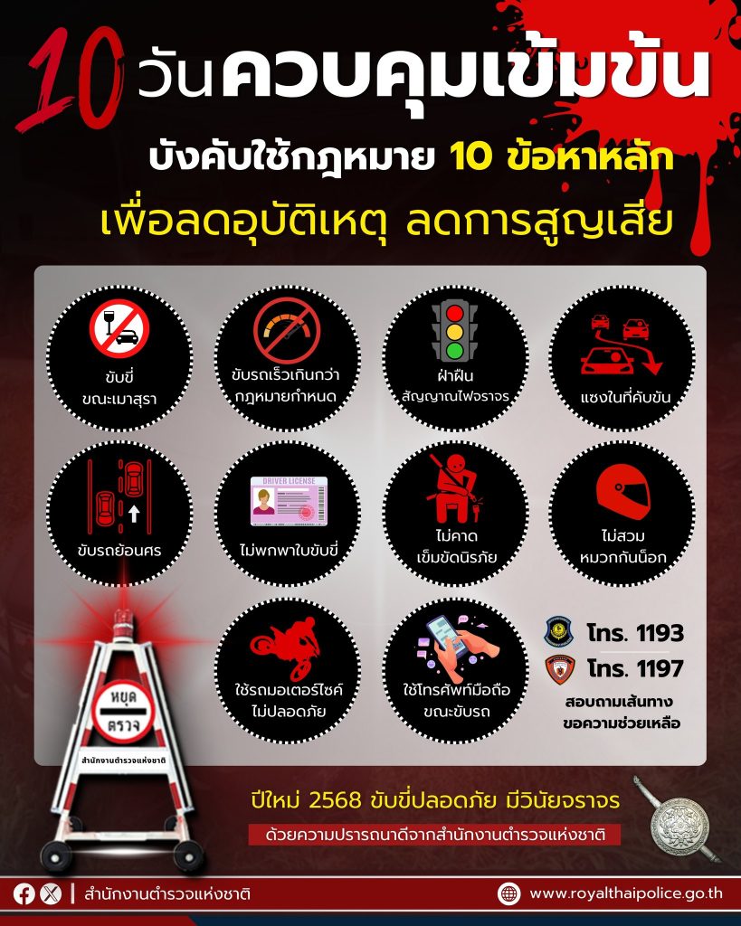 สำนักงานตำรวจแห่งชาติห่วงใยพี่น้องประชาชน เฝ้าระวังภัยบนท้องถนนในช่วงเทศกาลปีใหม่ 2568