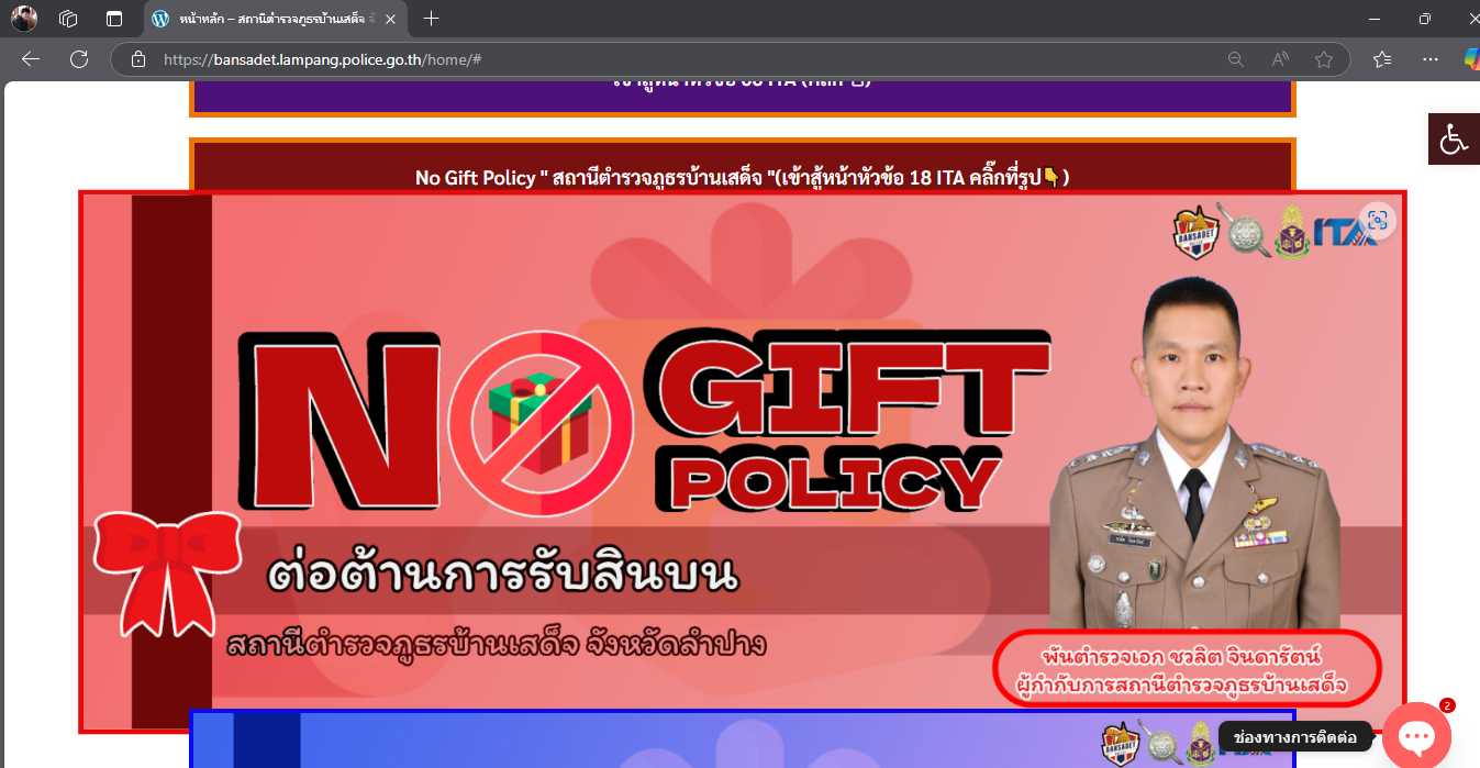 เเสดงภาพอินโฟกราฟิก บนหน้าเเรกของเว็บไซต์ของสถานีตำรวจภูธรบ้านเสด็จ