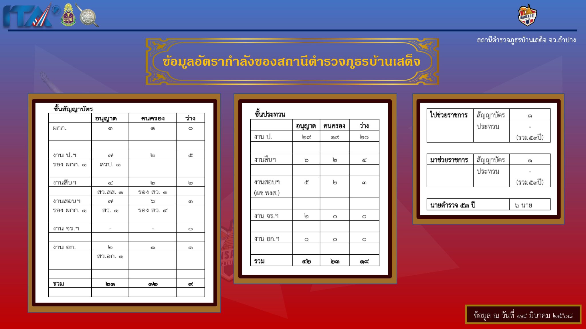 อัตรากำลังของสถานีตำรวจภูธรบ้านเสด็จ