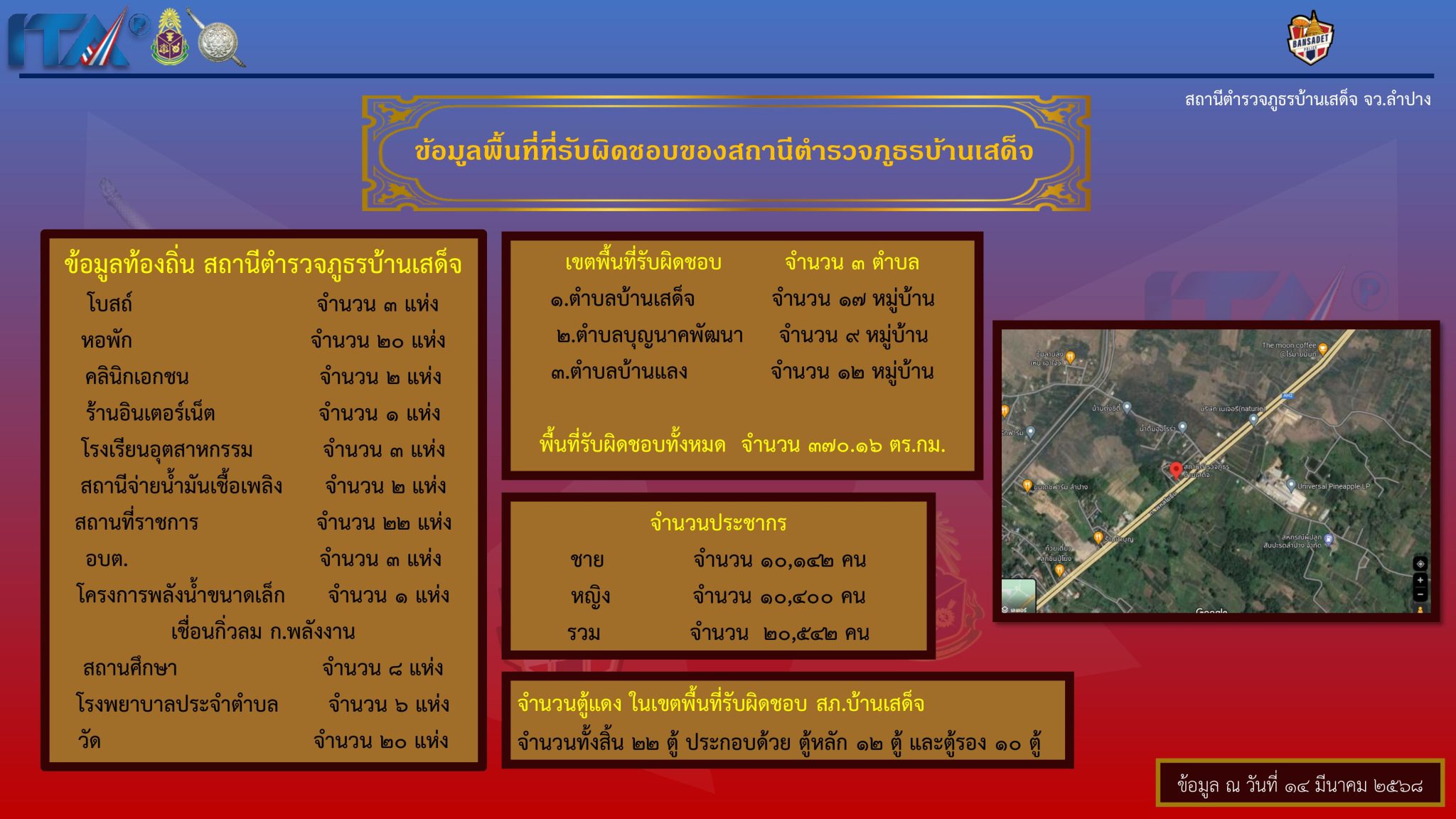 ข้อมูลพื้นที่ที่รับผิดชอบ เขต/ตำบล/จำนวนประชากร