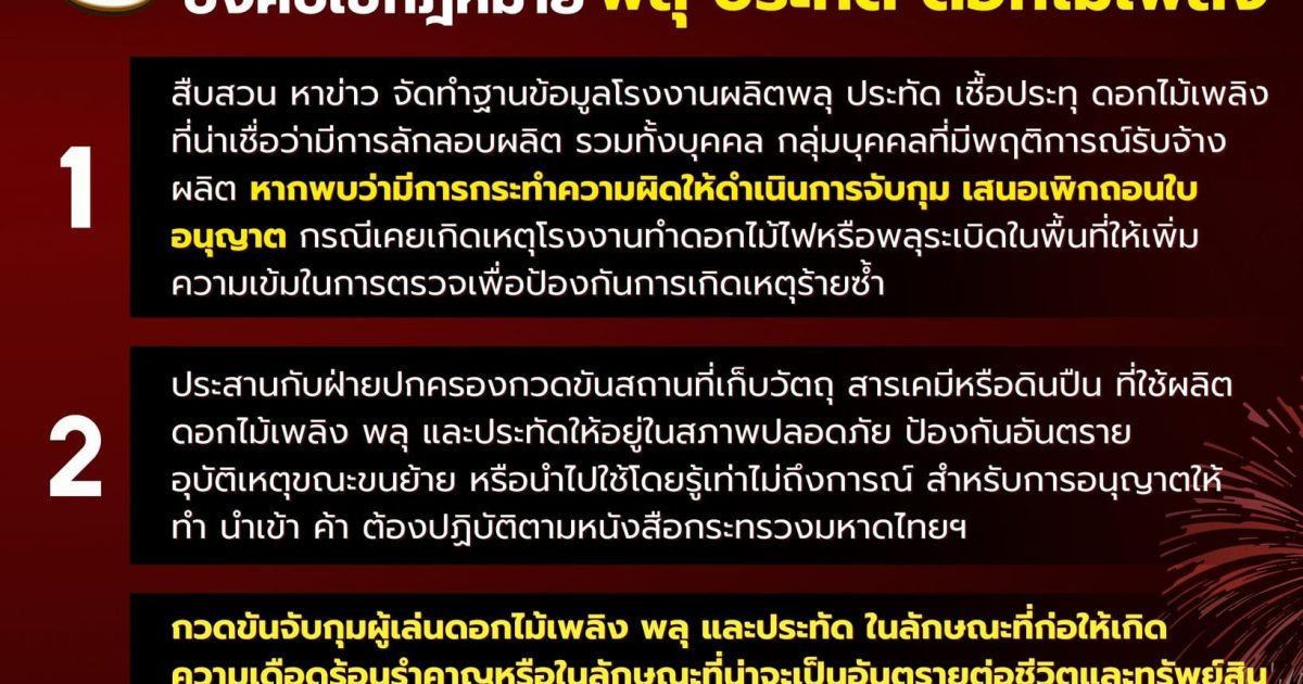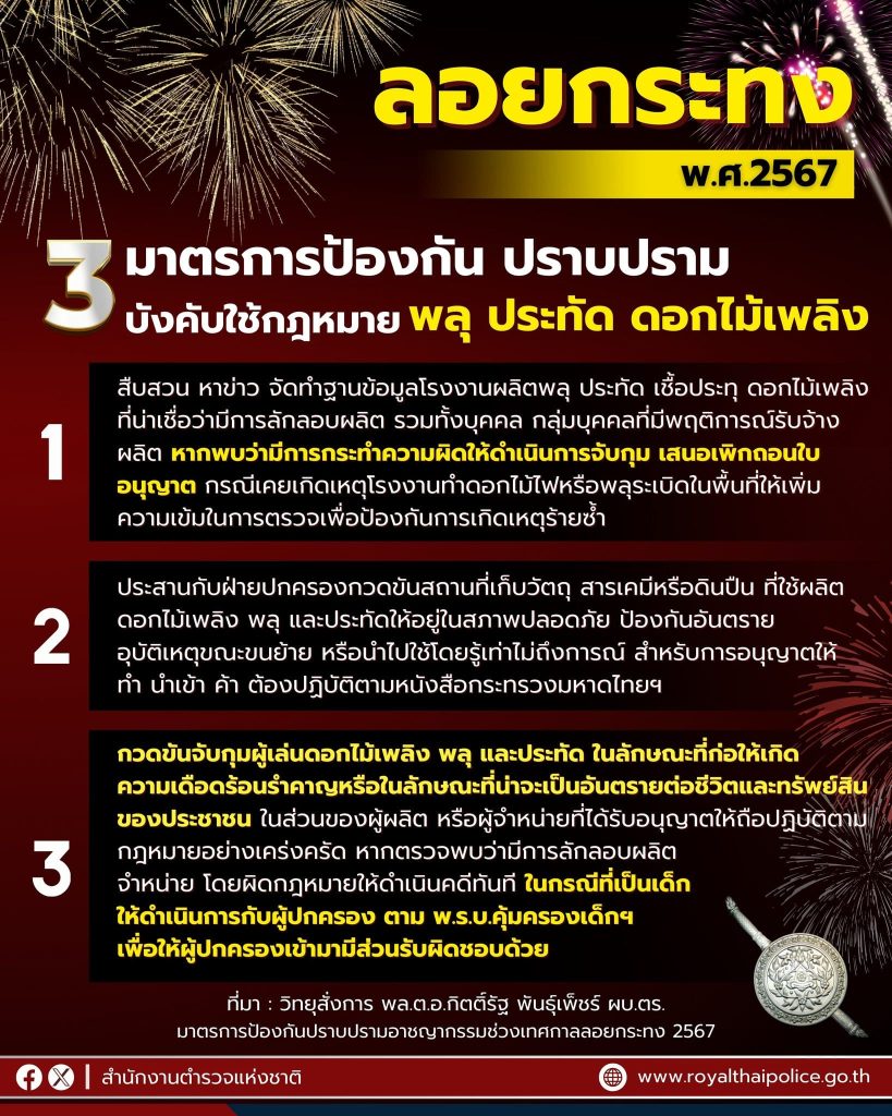 สำนักงานตำรวจแห่งชาติ ออก 3 มาตรการป้องกัน ปราบปราม บังคับใช้กฎหมาย เกี่ยวกับ “พลุ ประทัด ดอกไม้ไฟ” เพื่อความปลอดภัยในชีวิตและทรัพย์สินของประชาชน