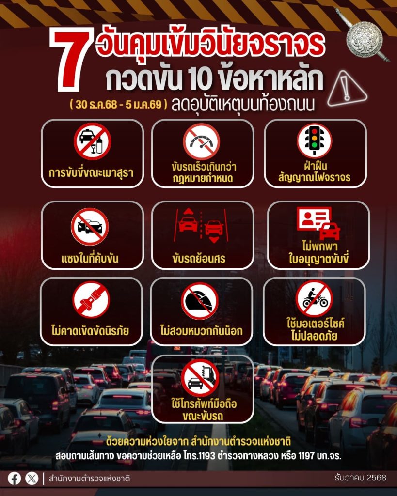 ตำรวจกวดขันวินัยจราจร 10 ข้อหาหลัก เพื่อลดอุบัติเหตุบนท้องถนน