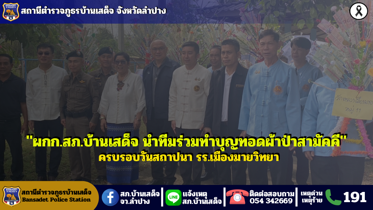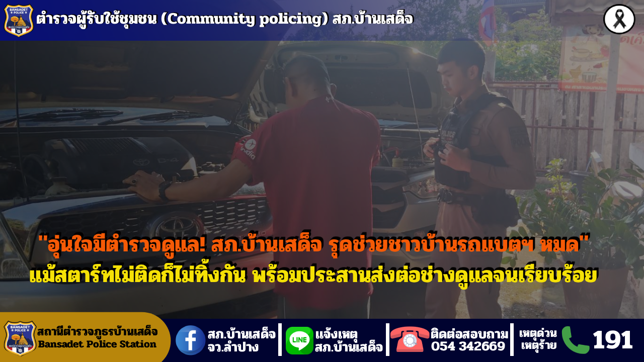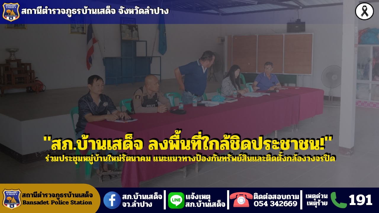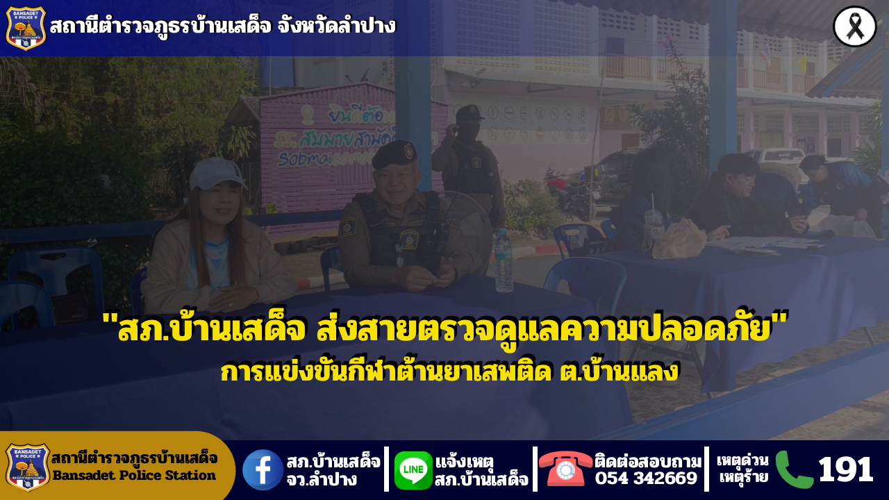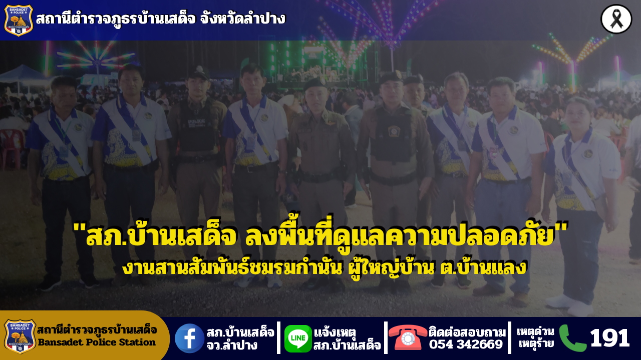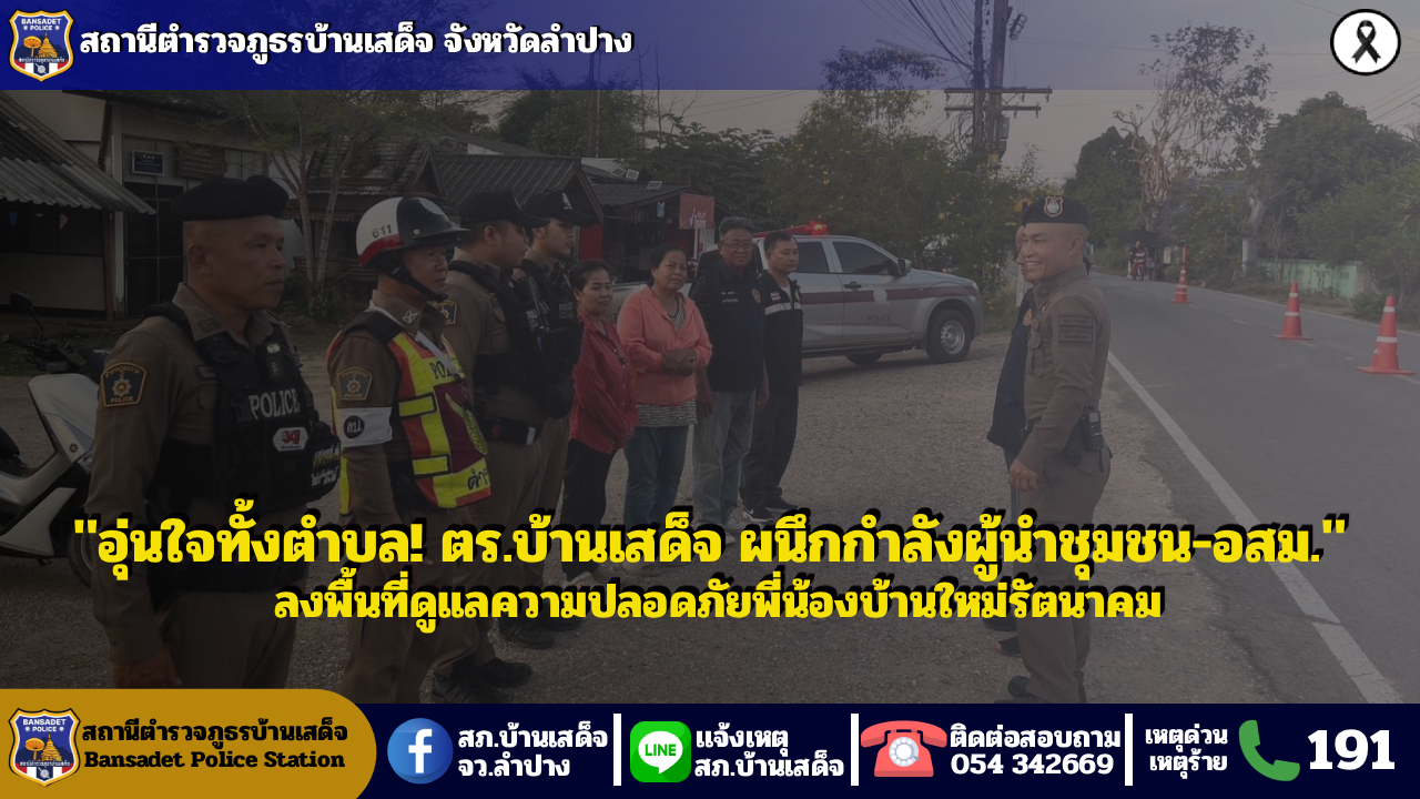 สภ.บ้านเสด็จ จว.ลำปาง วันที่ 21 มีนาคม 2569 เวลา 18.00 – 19.00 น. โดยการสั่งการของ พ.ต.อ.ชวลิต จินดารัตน์ ผกก.สภ.บ้านเสด็จ , พ.ต.ท.พงษ์ศิลป์ ธนะภาษี รอง ผกก.ป.ฯ , พ.ต.ต.นพ พึ่งศรี สวป.ฯ สั่งการให้ ร.ต.ท.วิรัช วงค์บุตร รอง สว.(ป.)สภ.บ้านเสด็จ ร้อยเวรฯ 20 พร้อมสายตรวจ 201 ว.4 ว.43 ร่วมกับผู้ใหญ่บ้านบ้านวังเรียบ ม.5 , ผู้ช่วยผู้ใหญ่บ้านฯ และอสม. บริเรวณหัวสะพานทางเข้าหมู่บ้าน บ.วังเรียบ ม.5 ต.บ้านเสด็จฯ เพื่อดูแลความปลอดภัยและความสงบเรียบร้อย ตามโครงการดำเนินงานตำบลยั่งยืนฯ ปี 2569