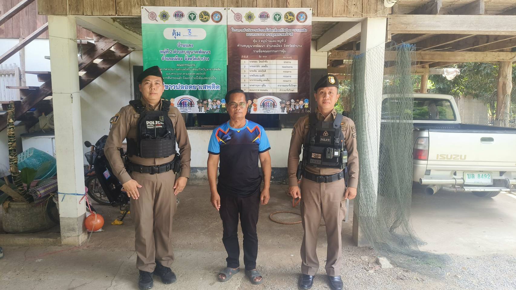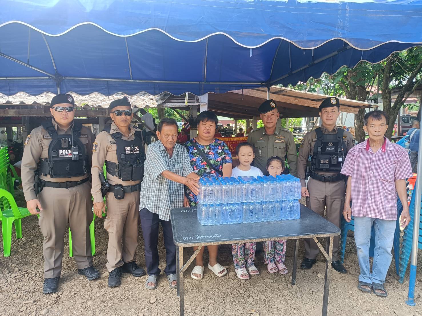 สภ.บ้านเสด็จ จว.ลำปาง วันที่ 8 มิถุนายน 2568เวลา 10.00 น. นำโดย พ.ต.ท.กำจร ใจจันทร์ สวป.สภ.บ้านเสด็จ,ร.ต.อ.พิชิตชัย ไชยาโส รอง สวป.สภ.บ้านเสด็จร้อยเวร 20 พร้อมสายตรวจ 201 ว.4 ดูแลความเรียบร้อยและอำนวยความสะดวกพร้อมกับมอบน้ำดื่มจำนวน 10 แพ็คให้กับชาวบ้านที่มาร่วมงานประเพณีเลี้ยงเจ้าพ่อ ณ ศาลเจ้าพ่อ(ศาลใหญ่) สภ.บ้านเสด็จ
