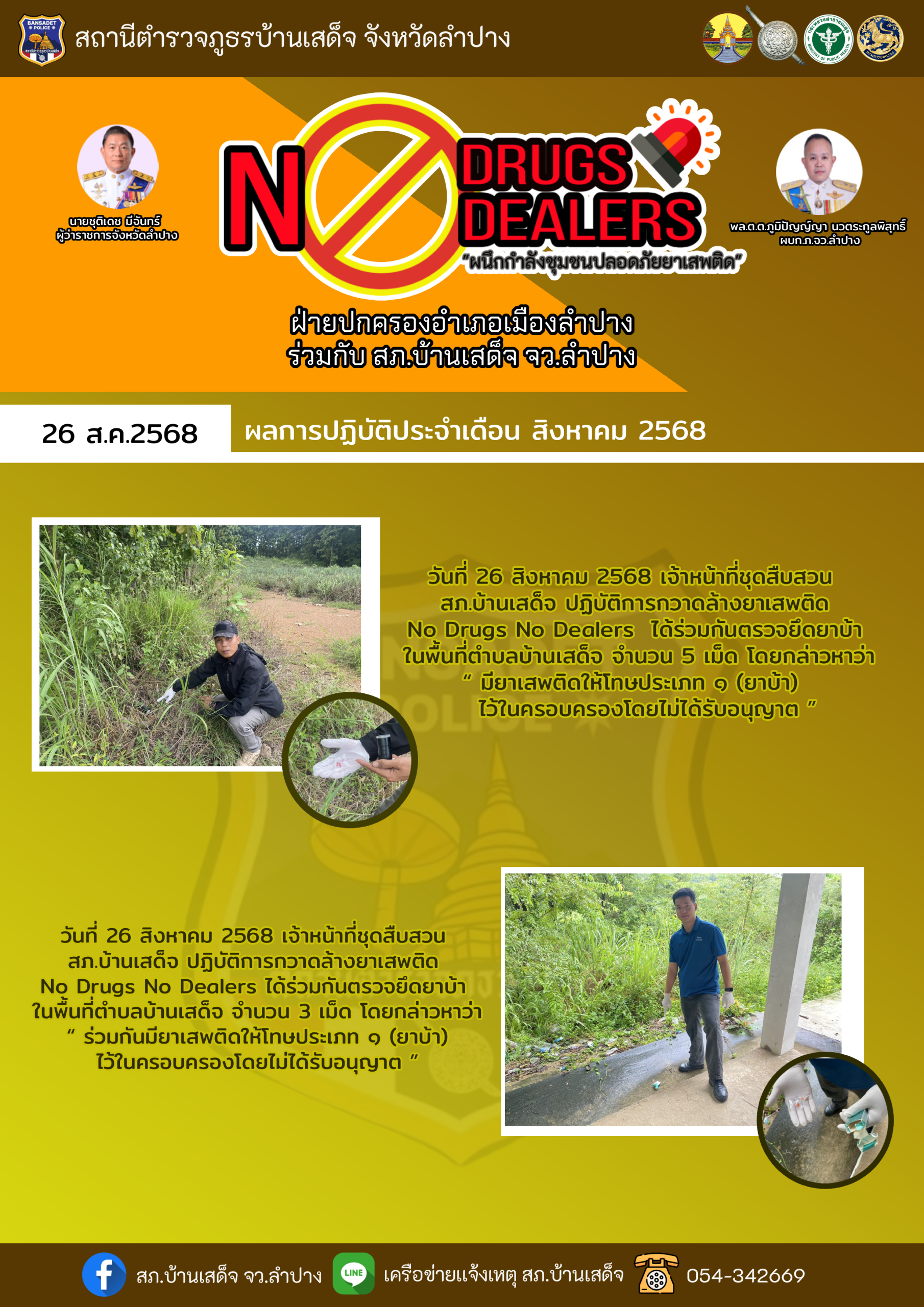 สภ.บ้านเสด็จ จว.ลำปาง วันนี้ 9 กันยายน 2568 เวลา 11.20 น. โดยการสั่งการของพ.ต.อ.ชวลิต จินดารัตน์ ผกก.สภ.บ้านเสด็จ , พ.ต.ท. พงษ์ศิลป์ ธนะภาษี รองผกก.ป.ฯ, พ.ต.ท.กำจร ใจจันทร์ สวป.ฯ สั่งการให้ ร.ต.อ.พิชิตชัย ไชยาโส รอง สวป.สภ.บ้านเสด็จ ร้อยเวร 20 พร้อมสายตรวจ 201 ว.4 ภารกิจแบบรายงานท้องถิ่นเกี่ยวกับสถานประกอบการร้านรับซื้อ/จำหน่ายของเก่า ดังนี้ – ร้านยุทธของเก่า บ้านเสด็จ ม.5 ต.บ้านเสด็จ – ร้านนิตยา บ้านห้วยยาง ม.6 ต.บ้านเสด็จ – ร้านบัวผันรีไซเคิล บ้านปงอ้อม ม.4 ต.บ้านเสด็จ – บจก.พรนัชชาฯ บ้านห้วยหลวง ม.15 ต.บ้านเสด็จ ตรวจสอบพบใบอนุญาตประกอบการและมีสมุดจดรายการรับซื้อของเก่า