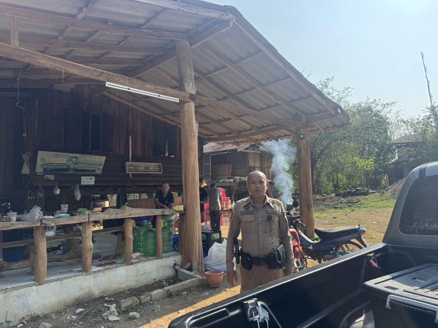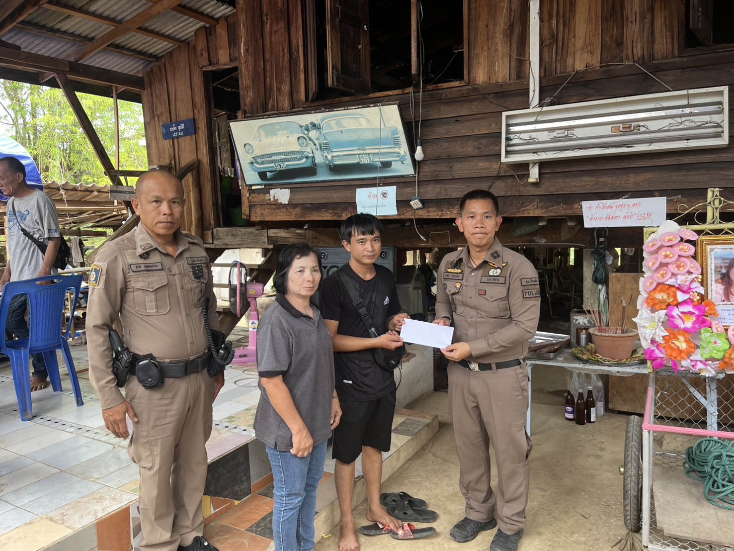 สภ.บ้านเสด็จ จว.ลำปาง วันนี้ 18 เมษายน 2568 เวลา 11.50 น. นำโดย พ.ต.อ.ชวลิต จินดารัตน์ ผกก.สภ.บ้านเสด็จ ด.ต.ชาติ บุญสมปานผบ.หมู่(ป.)สภ.บ้านเสด็จรักษาการร้อยเวร 20 พร้อมสายตรวจ 201 ว.4 ร่วมงานขาวดำ บ้านนิคม17 ม.8