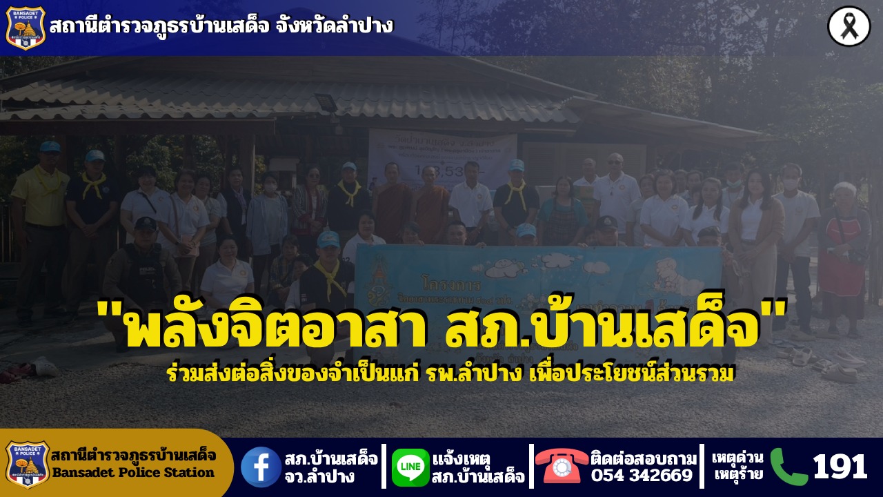สภ.บ้านเสด็จ จว.ลำปาง วันนี้ 30 มกราคม 2569 เวลา 10.00 น นำโดย พ.ต.อ.ชวลิต จินดารัตน์ ผกก.สภ.บ้านเสด็จ พร้อมคณะจิตอาสา สภ.บ้านเสด็จ ร่วมกิจกรรมจิตอาสาบริจาคของช่วยเหลือโรงพยาบาลลำปาง พร้อมคณะศรัทธาวัดป่าบ้านเสด็จ ณ วัดป่าบ้านเสด็จ