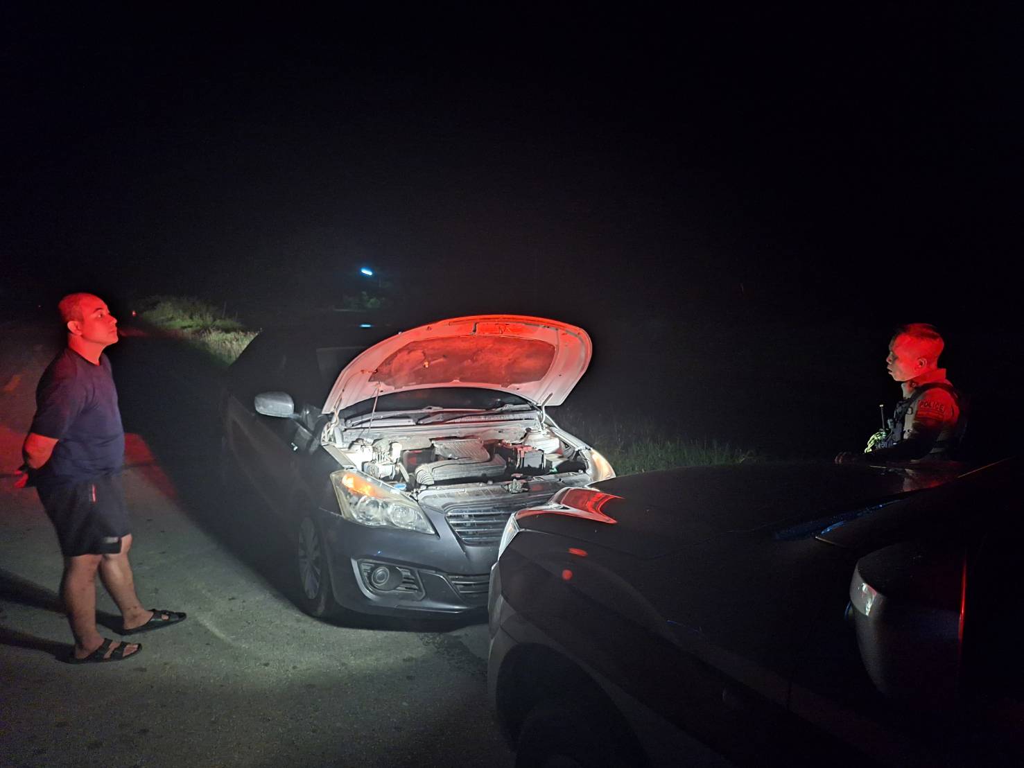 ประชาชนขอความช่วยเหลือรถยนต์น้ำมันหมดและแบตเตอรี่หมด บนถนนเลียบคลอง บ้านปงอ้อม ม.4 ต.บ้านเสด็จ จ.ลำปาง
