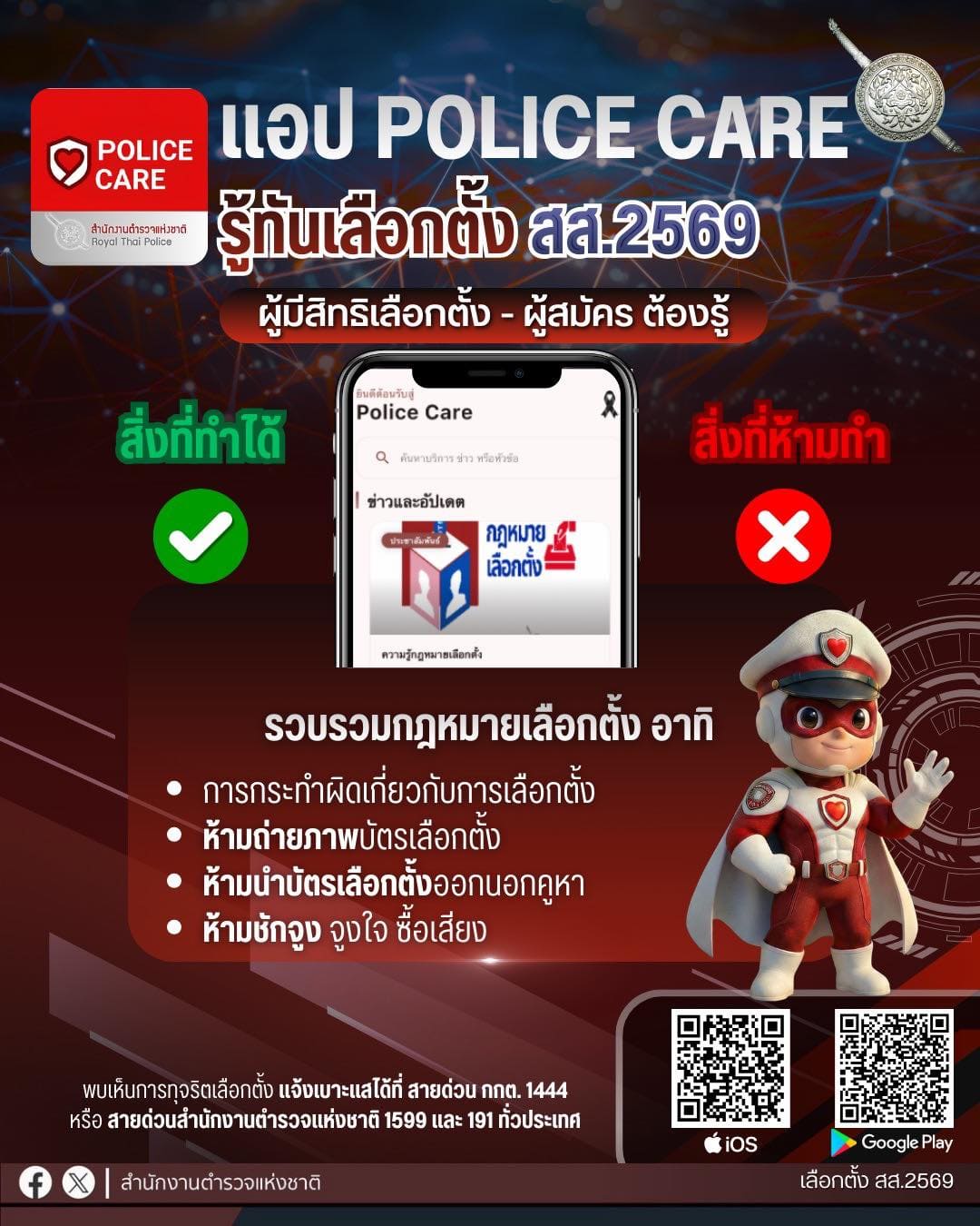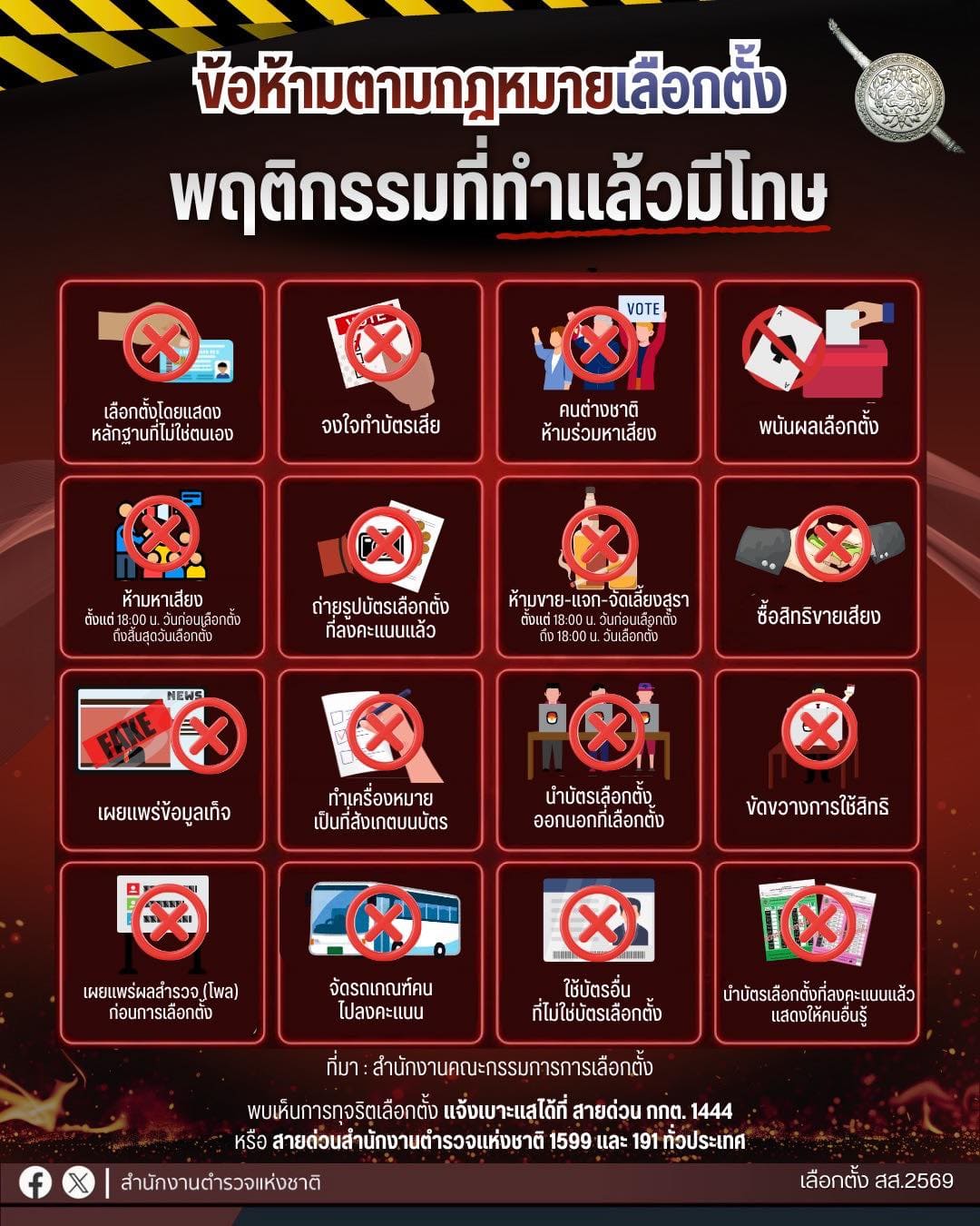 เช็กก่อนเลือกตั้ง สส.2569 วันอาทิตย์ที่ 1 กุมภาพันธ์ นี้ “เลือกตั้งล่วงหน้า” นอกเขต และในเขต เช็กก่อน สิ่งที่ต้องทำ สิ่งที่ต้องระมัดระวังไม่ให้ละเมิดกฎหมาย เช็กได้ที่แอปพลิเคชัน POLICE CARE ด้วยความปรารถนาดีจากสำนักงานตำรวจแห่งชาติ
