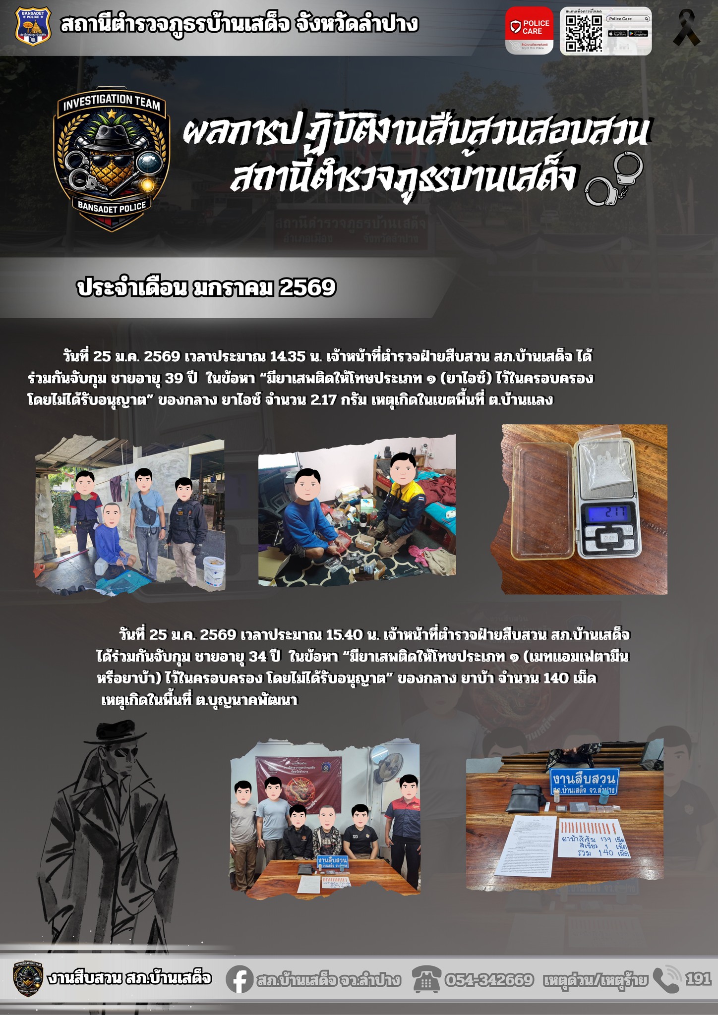 ตำรวจภูธรจังหวัดจังหวัดลำปาง พล.ต.ต.ภูมิปัญญ์ญา นวตระกูลพิสุทธิ์ผบก.ภ.จว.ลำปาง กำชับ “ตำรวจ” ดูแลความปลอดภัย สงบเรียบร้อยการเลือกตั้ง สส. และออกเสียงประชามติ 2569ให้ข้าราชการตำรวจทุกนายวางตัวเป็นกลางให้ประสานงานกับคณะกรรมการการเลือกตั้งอย่างใกล้ชิดพึงระมัดระวังการแสดงความเห็นทางสื่อสังคมออนไลน์ป้องกันปราบปรามการกระทำผิดกฎหมายเลือกตั้งสืบสวนหาข่าว กวาดล้างผู้มีอิทธิพล อาวุธปืนจัดกำลังตามที่คณะกรรมการการเลือกตั้งร้องขอข้าราชการตำรวจทุกระดับวางตัวเป็นกลางรักษาความปลอดภัยผู้สมัครรับเลือกตั้ง หรือผู้เกี่ยวข้องกับ การเลือกตั้ง(ตามคำสั่ง ตร. ที่ 38/2548)ให้ความร่วมมือ ช่วยเหลือ/สนับสนุนและไปใช้สิทธิเลือกตั้งผู้บังคับบัญชาสอดส่องดูแลผู้ใต้บังคับบัญชาให้วางตัวเป็นกลางทางการเมือง พบเห็นการกระทำผิดกฎหมาย เหตุด่วน เหตุร้าย โทร.191 ตลอด 24 ชั่วโมง