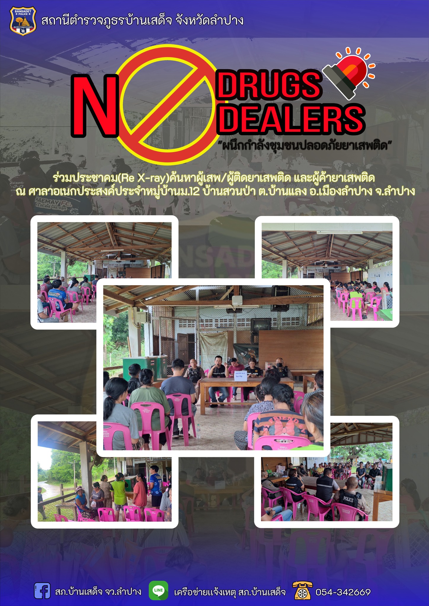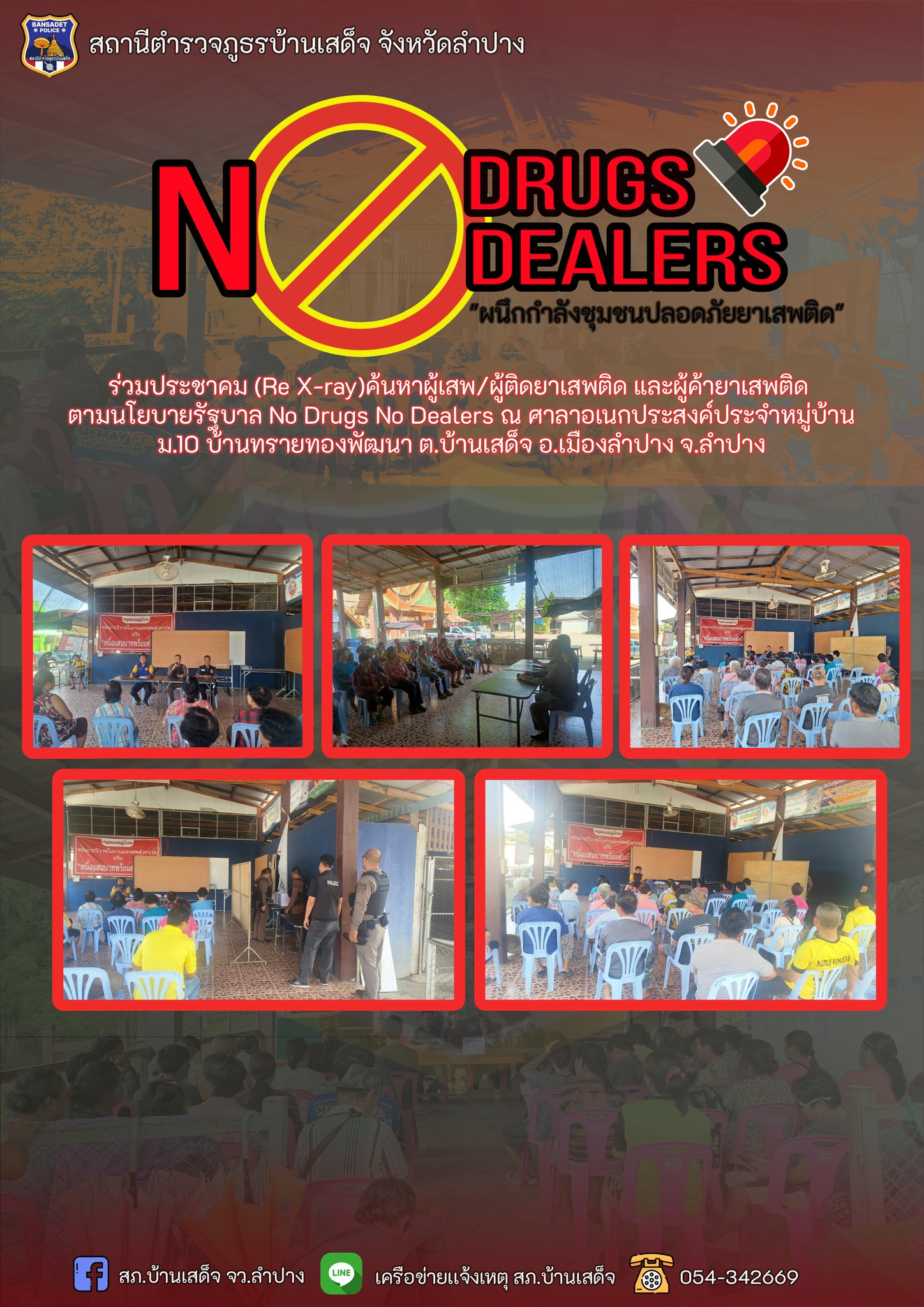 ร่วมประชาคม (Re X-ray)ค้นหาผู้เสพ/ผู้ติดยาเสพติด และผู้ค้ายาเสพติด ตามนโยบายรัฐบาล No Drugs No Dealers ณ ศาลาอเนกประสงค์ประจำหมู่บ้าน ม.10 บ้านทรายทองพัฒนา ต.บ้านเสด็จ อ.เมืองลำปาง จ.ลำปาง