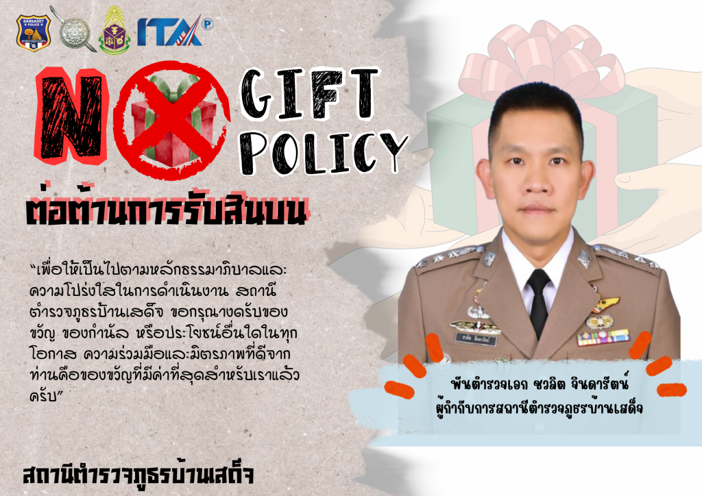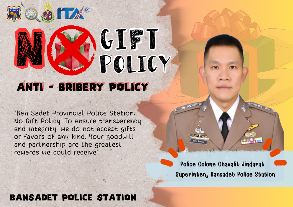 ประกาศนโยบาย ต่อต้านการรับสินบน(Anti - Bribery Policy) สภ.บ้านเสด็จ จว.ลำปาง